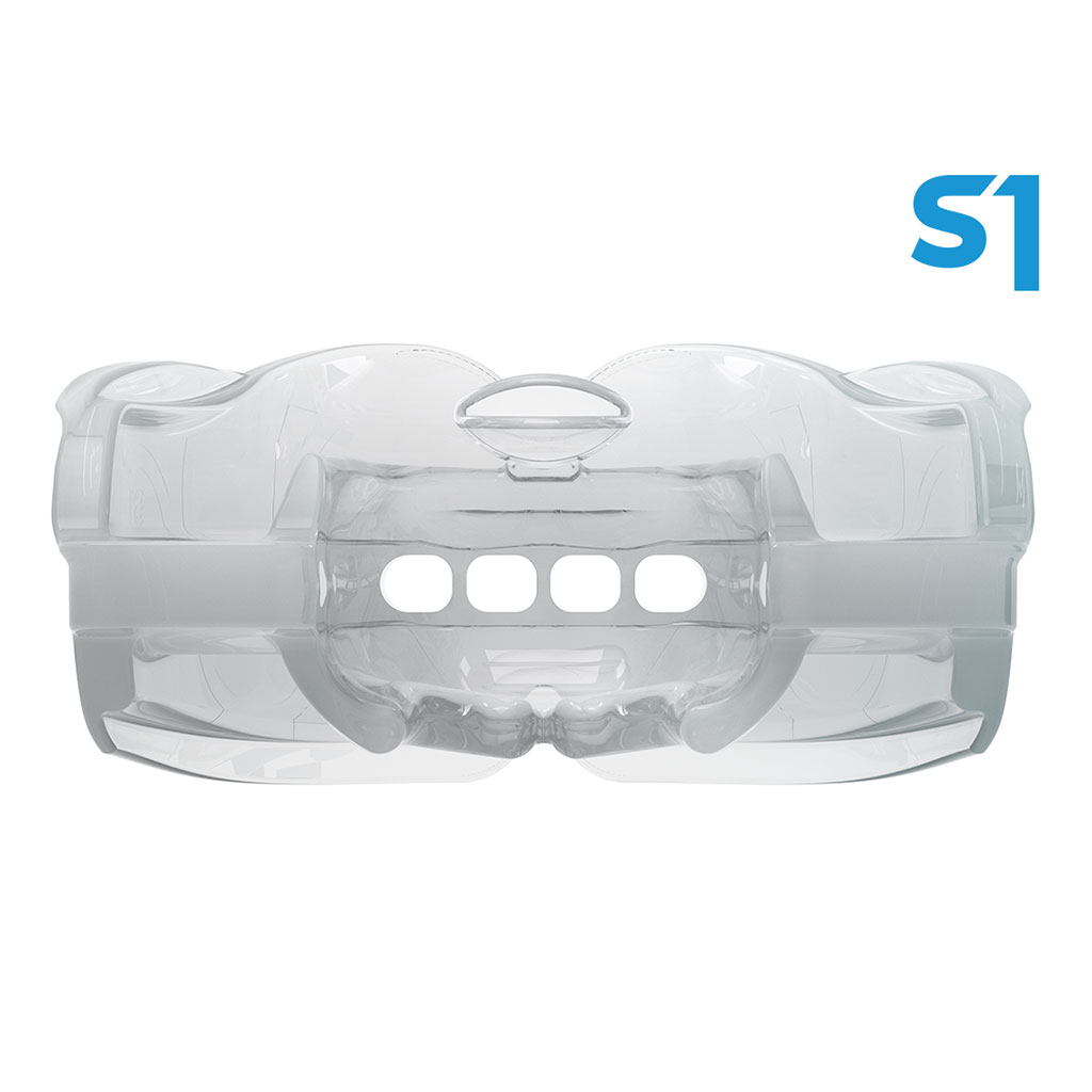 De plus, le S1 possède quatre grands trous de respiration sur le devant pour réguler la respiration, et un Air Spring Core pour préserver l’articulation de la mâchoire. La conception souple de l’appareil le rend également adapté aux troubles de l’ATM.